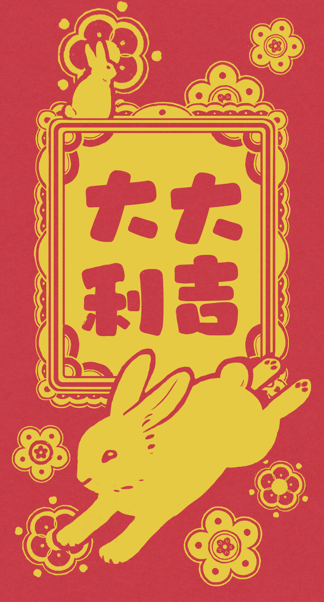 A red envelope (红包) design made for the celebration of 2023's Lunar New Year, hearlding the Year of the Rabbit. May we all have good fortune!